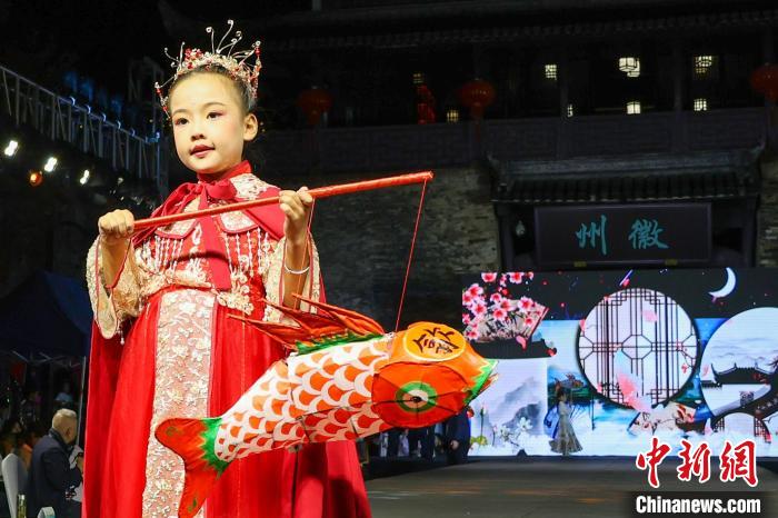 当晚,歙县鱼灯秀、徽剧绕场秀、非遗剪纸艺术时装秀、非遗国际时装秀接连上演。歙县将传统非遗文化融入现代服装设计,以剪纸艺术为主要技法,融徽州山水、自然风光、民俗故事为一体,通过刀光剪影里的指尖画作表现徽州风情,设计创作立体感强、图案生动的原创服饰。